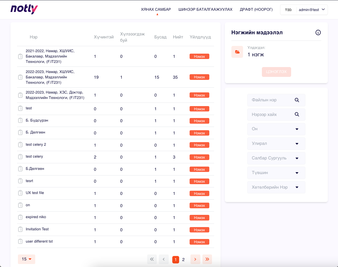 Хэрэглэгч бүртгэхдээ Салбар нэгж тохируулж өгч болох ба ингэснээр тухайн хэрэглэгч зөвхөн тухайн салбар нэгжийн цахим файлыг удирдана.