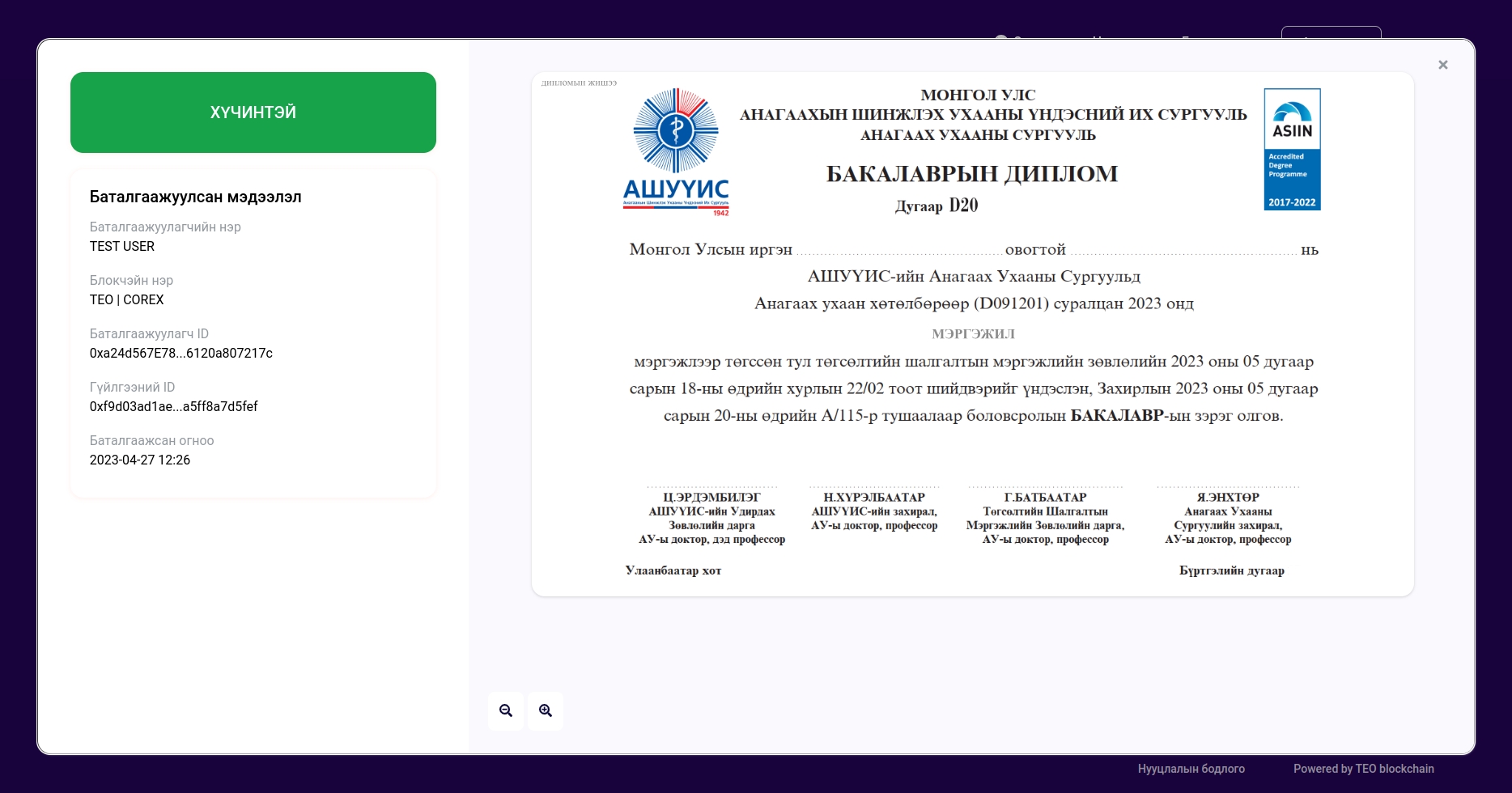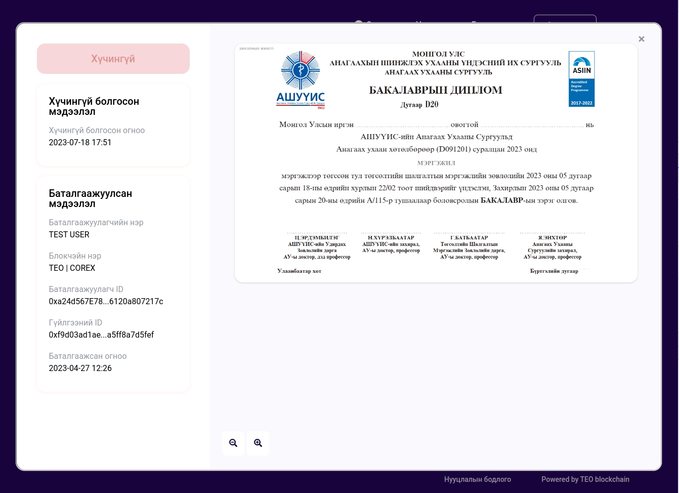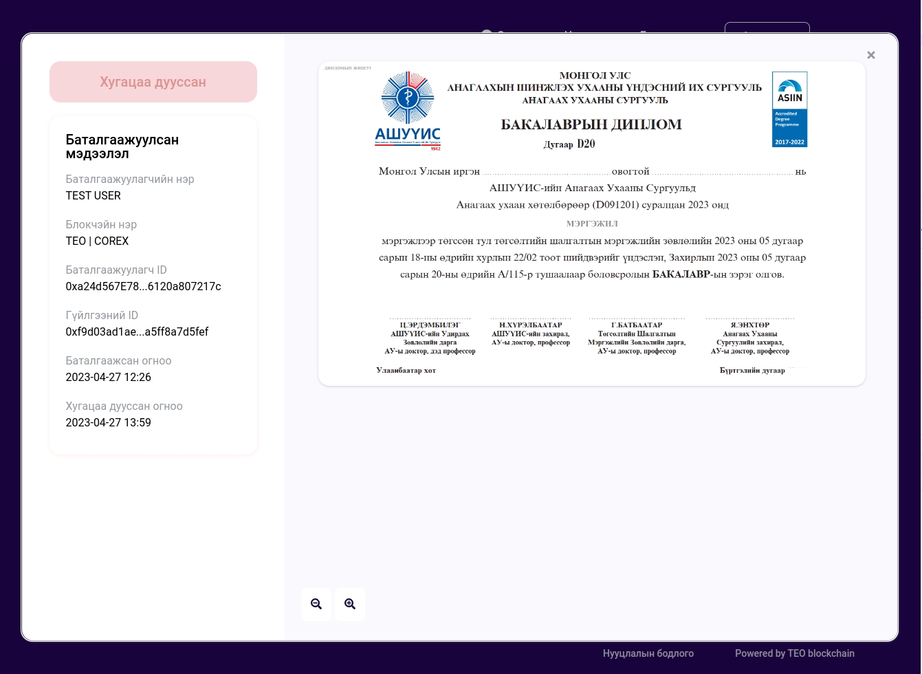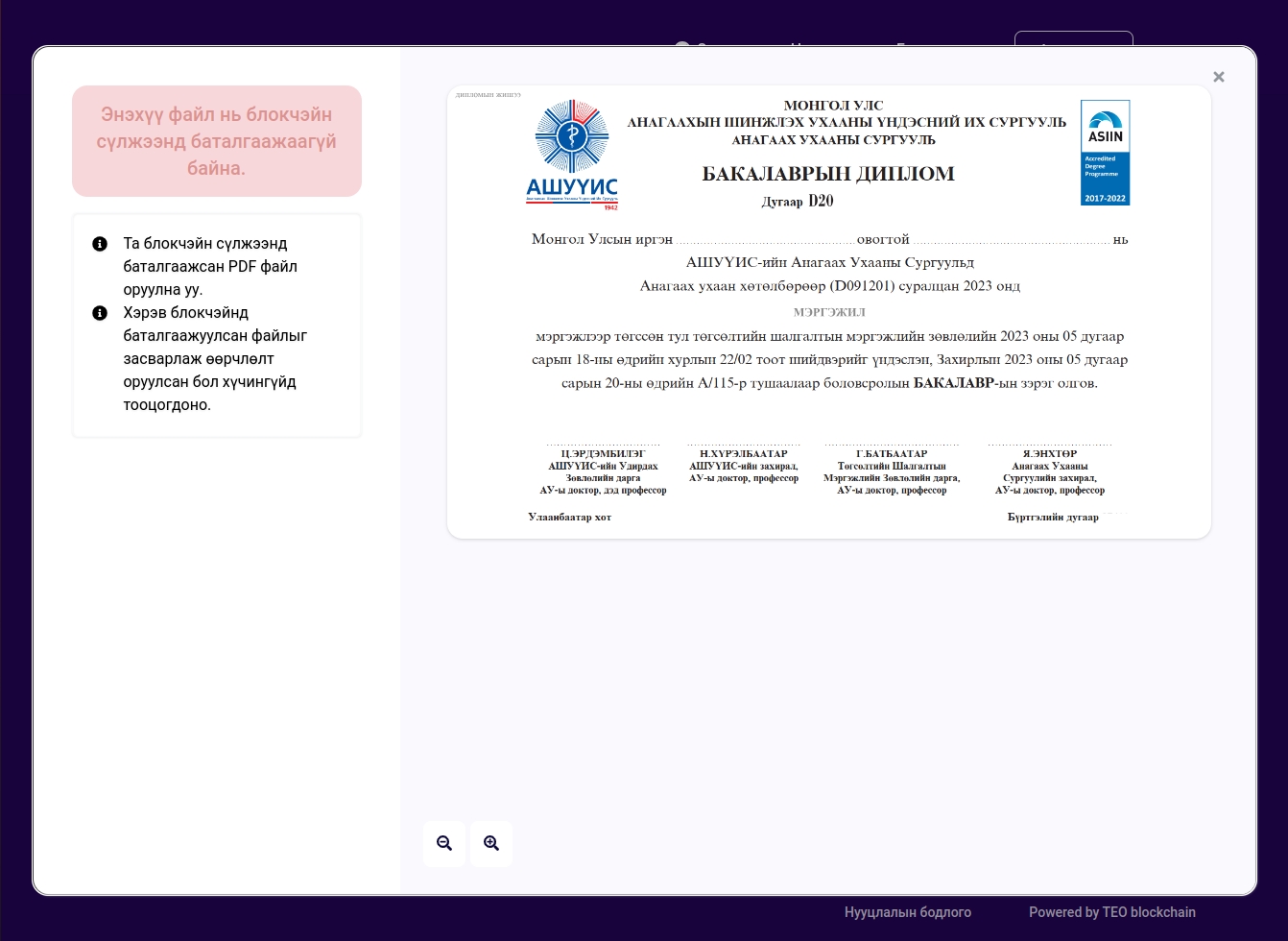 Огт блокчэйнд бичигдээгүй эсвэл блокчэйнд бичсэн файлыг ямар нэг байдлаар өөрчилсөн файл дараах байдлаар харагдана.